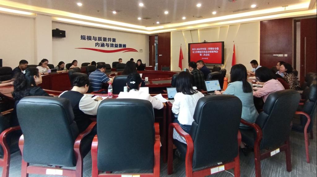 4月2日上午,我校在行政楼2302会议室召开2023-2024学年第二学期安稳工作会议暨意识形态分析研判会第二次会议,校党委书记张毅,副校长李春雷出席会议,各职能部门、二级学院主要负责人参加会议。会议由校党委副书记房朝君主持。