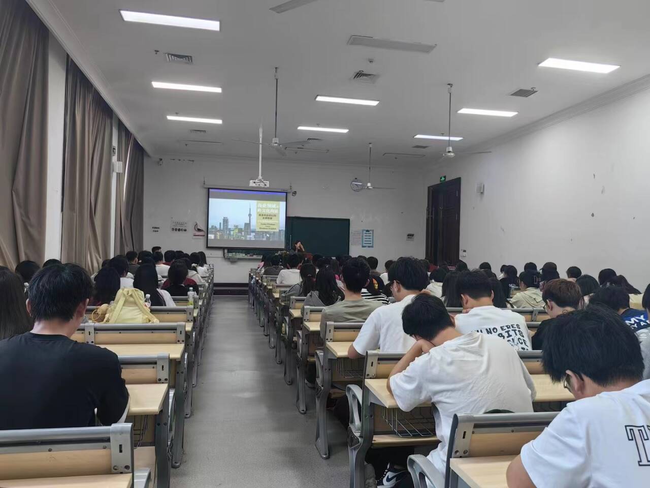 讲座以“历史、贸易、文化、教育”为主线,通过商务英语的独特视角,带领同学们领略了世界经济中心的发展和迁移,回顾了亚洲经济的崛起,见证了在全球经济一体化的今天,中国力量的迅猛发展和脱颖而出,并指出,在当今中国对外开放大格局下,英语仍然是世界商业和贸易的重要语言。同时,曲旻巧妙地将托业考试的起源、发展与用途穿插其中,以实际案例鼓励大家冲破传统语言类考试的束缚与枷锁,让自己尝试新的途径提升英语应用能力、为毕业后的择业就业添砖加瓦。