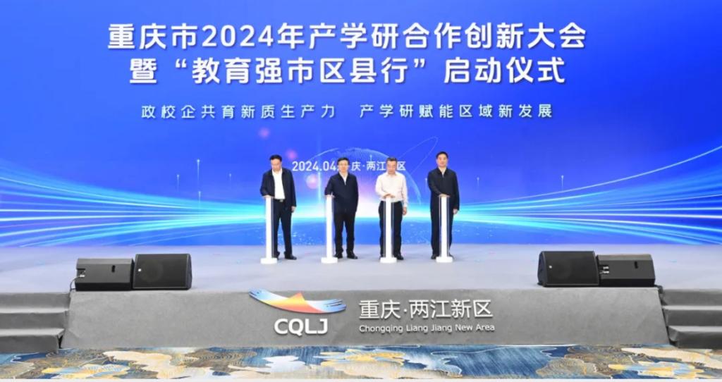 现场还举行了产学研合作集中签约。市教委与包括两江新区在内的9个“教育强市区县行”试点区县签约。重庆大学、重庆医科大学等7所高校分别与两江新区、高新区等7个合作区县/产业园区合作签约。重庆师范大学、重庆理工大学等14所高校分别与马上消费、赛力斯等14个合作企业签约。