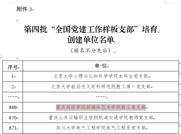 近日,教育部办公厅下发《关于公布第四批全国党建工作示范高校、标杆院系、样板支部培育创建单位名单的通知》,学校新媒体艺术学院教工党支部获批“全国党建工作样板支部”培育创建单位,学校基层党组织再次取得国家级项目的突破。