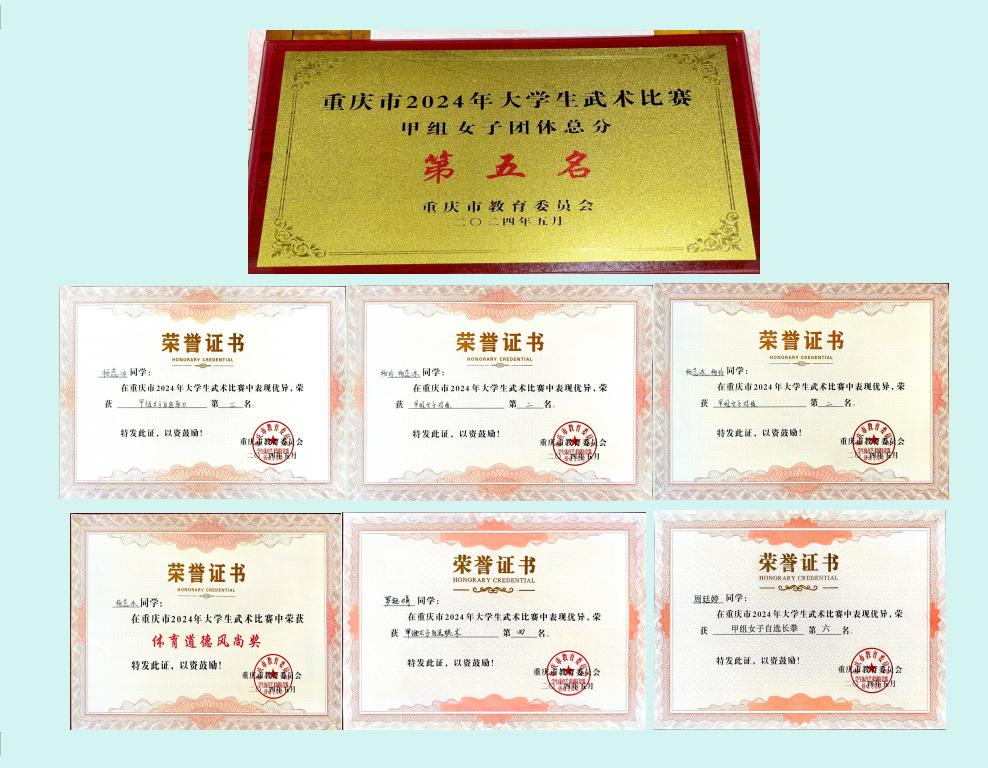 5月9日-12日,由重庆市教育委员会主办的“2024年重庆市大学生武术比赛”在重庆师范大学举行。本次比赛吸引了全市31所高校共计421名运动员和教练员参赛。我校武术俱乐部4学生队员在主教练朱从彬老师带领下代表学校参加比赛