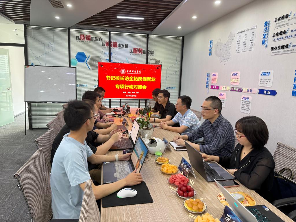 在谦圣科技总经理贺楹芯、品牌专员周望龙以及研发部门、企划部相关领导的带领下,张立副校长一行参观了谦圣科技公司基本情况,并就如何互相协作、互利互赢、学生就业等方面交流洽谈。