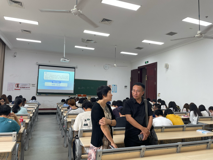 首先,王功名教授采取随机听课形式走进1401教室,旁听了思政课教师高雪莲的《中国近现代史纲要》课。王功名教授坐进学生中间认真听课,并在课间与高老师进行了深入交流、指导。他对高老师的专业素养、授课水平及驾驭课堂的能力给予了充分肯定,王教授认为高老师理论功底深、逻辑性强、梳理清晰,并能够另辟蹊径,结合所学专业,从党史视角回应学生对中国近现代命运抉择意蕴的困惑,具有很强的说服力和吸引力。