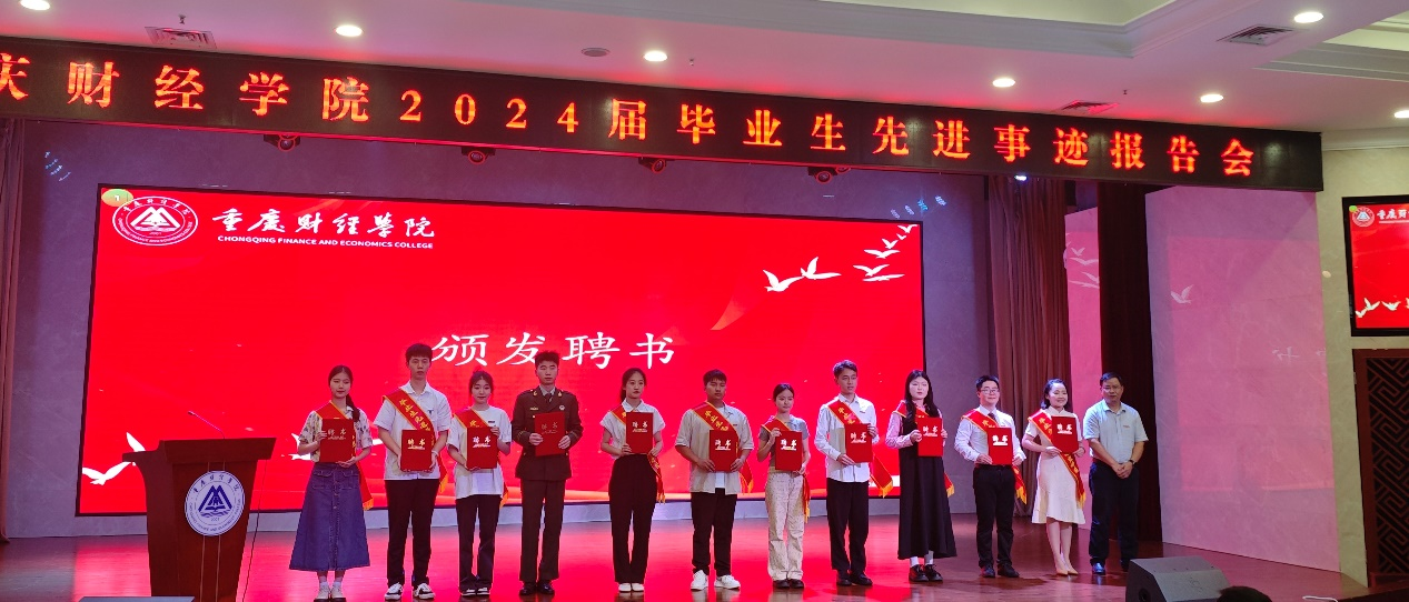 宣讲会上,学生工作部部长唐川川宣读了《靠谱的电子游戏官网关于聘任2024届毕业生先进事迹宣讲团成员的决定》文件。校党委书记张毅为宣讲团成员颁发了聘书。