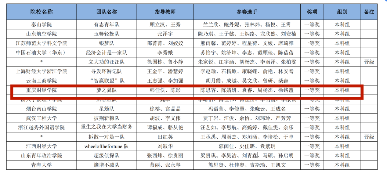 此次获奖不仅是对这两队学生个人能力的肯定,也是对我校财富管理学院和会计学院教育教学水平的认可,更是我校教育教学成果的充分体现。我校一直注重培养学生的实践能力和创新精神,鼓励学生积极参与各类学科竞赛活动,为学生提供了广阔的发展空间和锻炼机会,希望重财学子们再接再厉,再创佳绩!