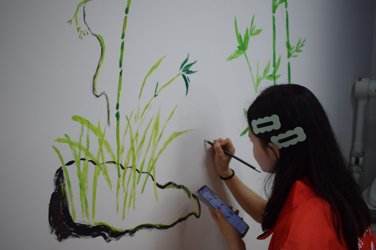 我校新媒体艺术学院、软件学院“三下乡”志愿团分别去到圣灯山村和莲花街道,结合中医药、山水风景、国画等元素,用画笔装饰老旧墙面。志愿者们把传统文化勾勒在每天路过的墙面上。《本草纲目》中记载“荷叶服之,令人瘦劣”以美术为媒介,用墙绘美化乡村,将中医药、国画等传统文化印在小朋友的眼前。在志愿者的介绍中,孩子们了解了国画的发展历史、艺术特征以及中医药材背后蕴藏的优秀传统文化与工匠精神。“这是我家端午节挂门上的草!用它入药可以去湿、散寒、止血、消炎、平喘、止咳!”“我会画国画啦!我要去参加比赛!”