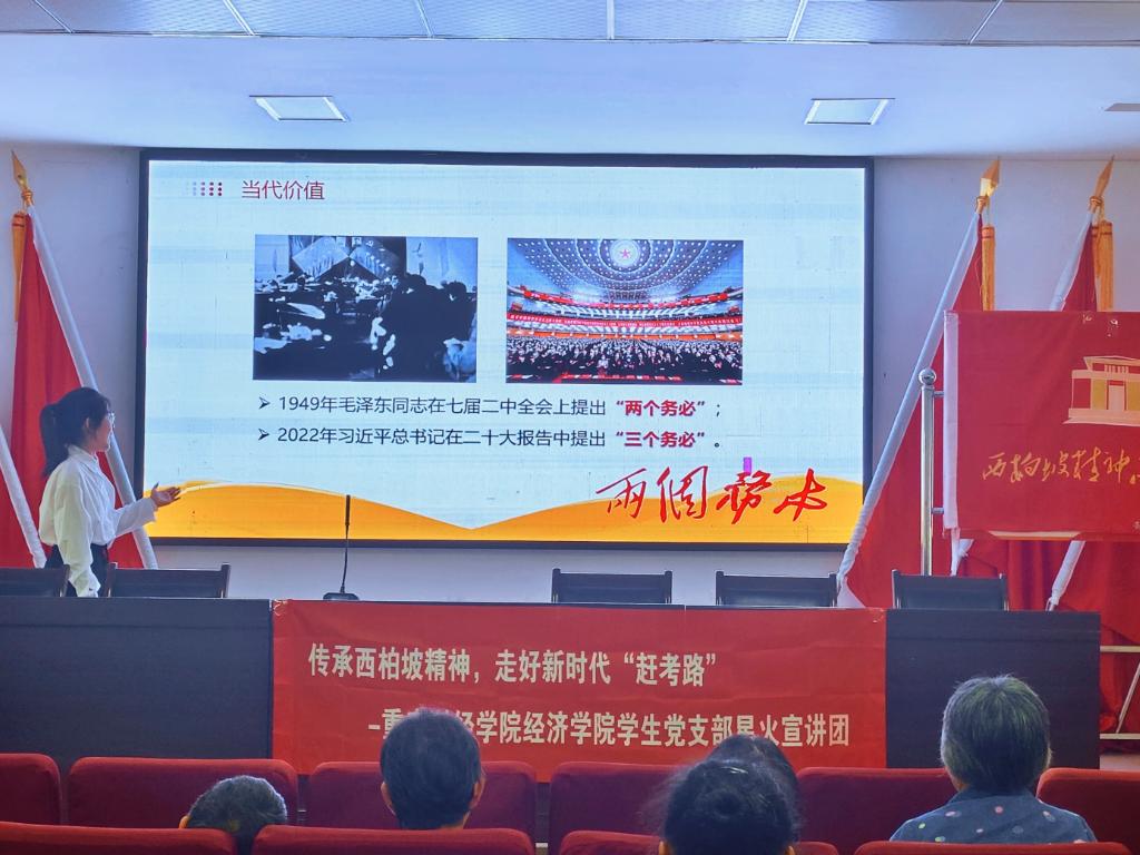 为进一步弘扬西柏坡精神,经济学院在胜天村举办“西柏坡精神”宣讲活动。主讲人张姿君深入讲解了西柏坡时期的光辉实践,生动再现了中国共产党人的辉煌历程,强调了西柏坡精神的当代价值,激励党员不忘初心、艰苦奋斗、敢于斗争。