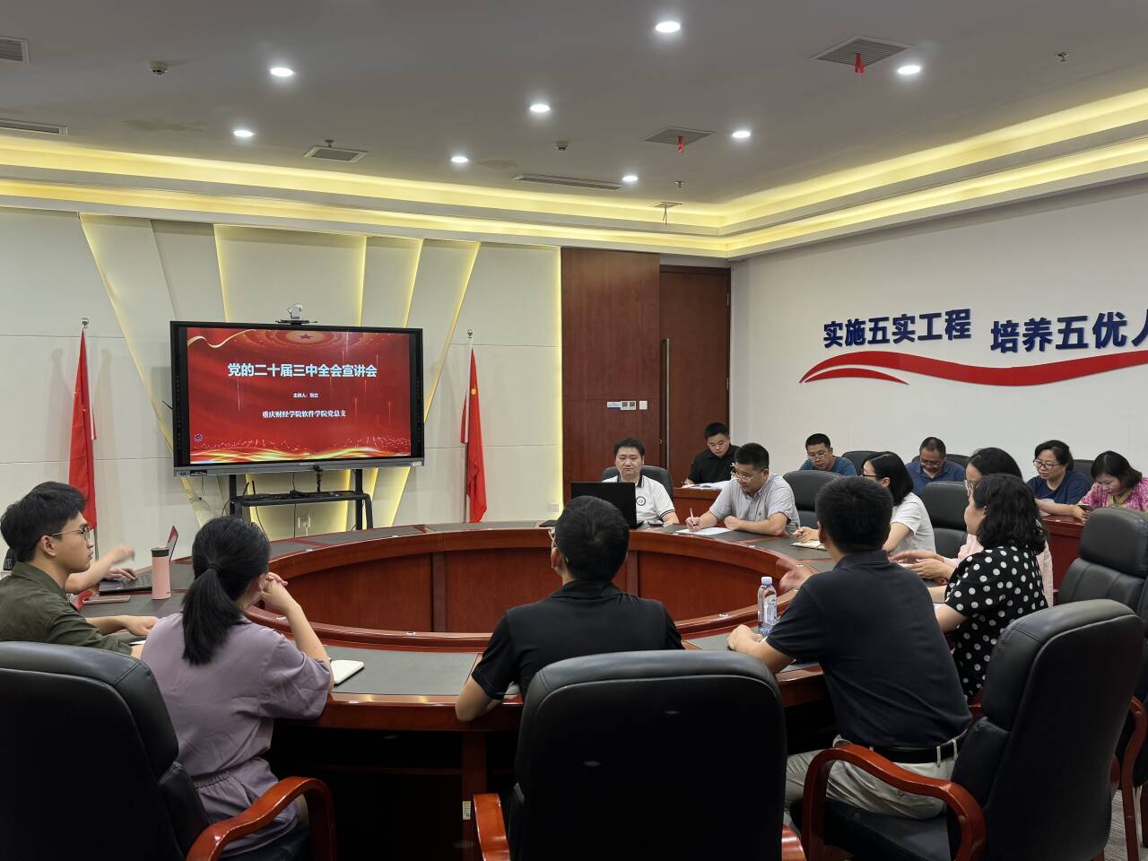 为深入学习领会习近平总书记在党的二十届三中全会上的重要讲话精神,全面准确理解《中共中央关于进一步全面深化改革、推进中国式现代化的决定》提出的进一步全面深化改革重大举措,9月24日,校党委委员、副校长张立深入软件学院宣讲党的二十届三中全会精神。学院党政领导班子及全体教师参加本次会议。会议由党总支副书记刘有沛主持。