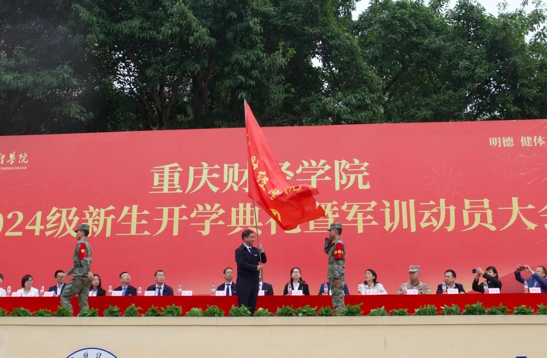 最后,校党委书记张毅向军训团授旗。重财学子齐唱校歌《同心铸辉煌》。至此,大会圆满结束。
