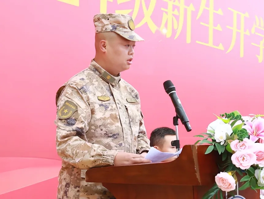 “大家要在顺境中不骄傲不自满,在逆境中不消沉不动摇,风险面前不屈服不退缩。”校长吴华安在致辞中说到。他讲述了新中国成立75周年的山河辽阔与国泰民安,尤其是祖国彰显出的硬核底气与实力;他回顾了学校过去一学年在教育教学、人才培养等方面取得的主要成绩,并提出了四点希望:“一是希望同学们坚定理想信念‘主旋律’,高站位践行使命担当;二是希望同学们深耕专业知识‘主阵地’,高质量达成学业目标;三是希望同学们锤炼能力提升‘主引擎’,高效率参加各类实践;四是希望同学们成为国防教育‘主力军’,高起点完成军训任务。”他鼓励同学们锐意进取,不断攀登学习的高峰;期待同学们在军训中培养良好的品德,成为汹涌的后浪,用汗水书写青春的华章,用拼搏铸就明日的辉煌。