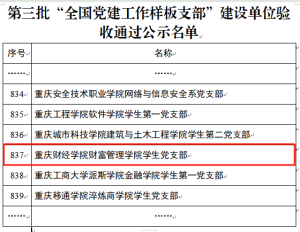 近日,教育部思想政治工作司公布了第三批新时代高校党建示范创建和质量创优工作建设单位验收通过名单,学校会计学院(财富管理学院)学生党支部顺利通过验收。
