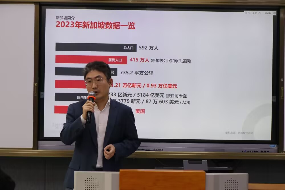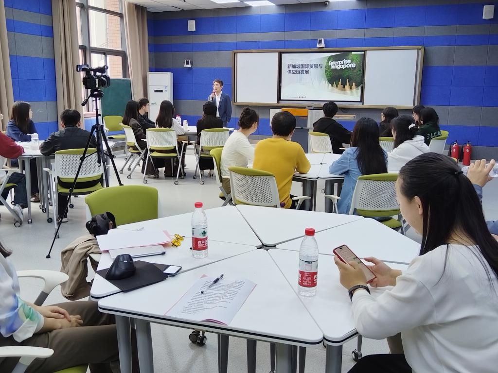 胡晨经理以“新加坡国际贸易与供应链发展”为主题,详细阐述了新加坡如何利用其独特的地理优势、金融贸易设施、多元化网络、高效物流系统以及稳定的法律政策环境,成功打造成为国际贸易中心和全球最佳转运枢纽。他的分享让学员们对新加坡的国际贸易与供应链体系有了更为全面和深入的了解。