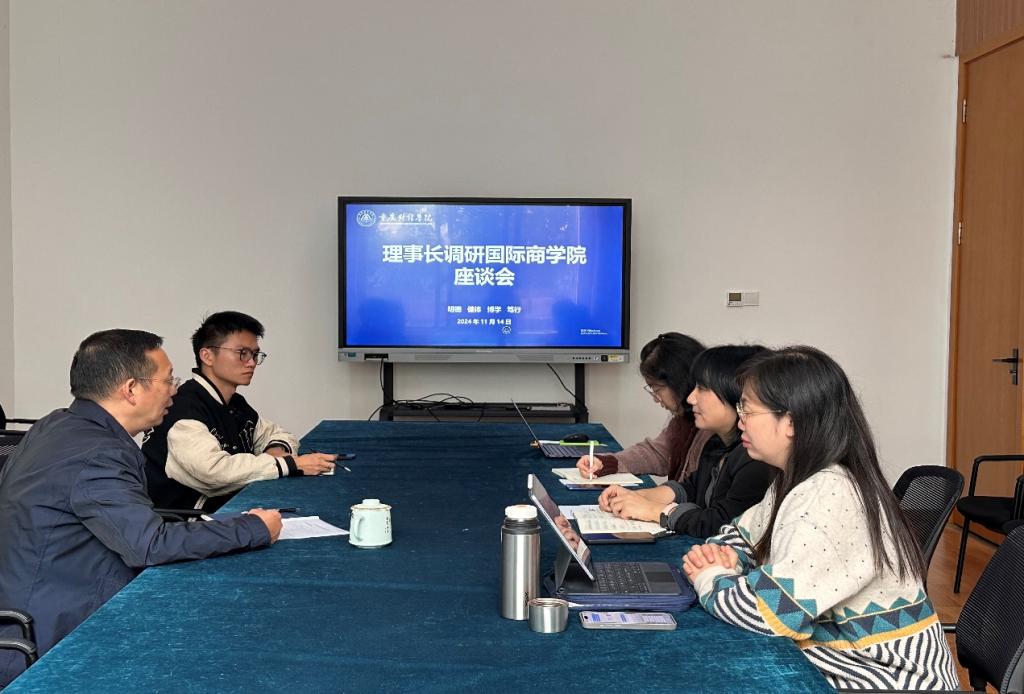 国际商学院学团办兼综合办主任余灵爽、专职辅导员李倩参加调研,理事长助理王磊陪同调研。