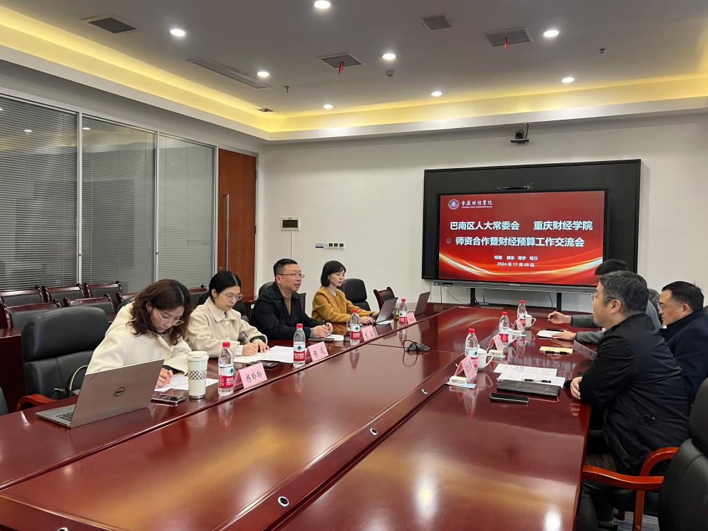 1120日,巴南区人大常委会副主任周成清一行到访考察,副校长张立全程陪同并主持座谈会,就校地师资合作事宜尤其是区级人大的财经预算工作进行了深入交流并达成专家库建设战略合作共识。