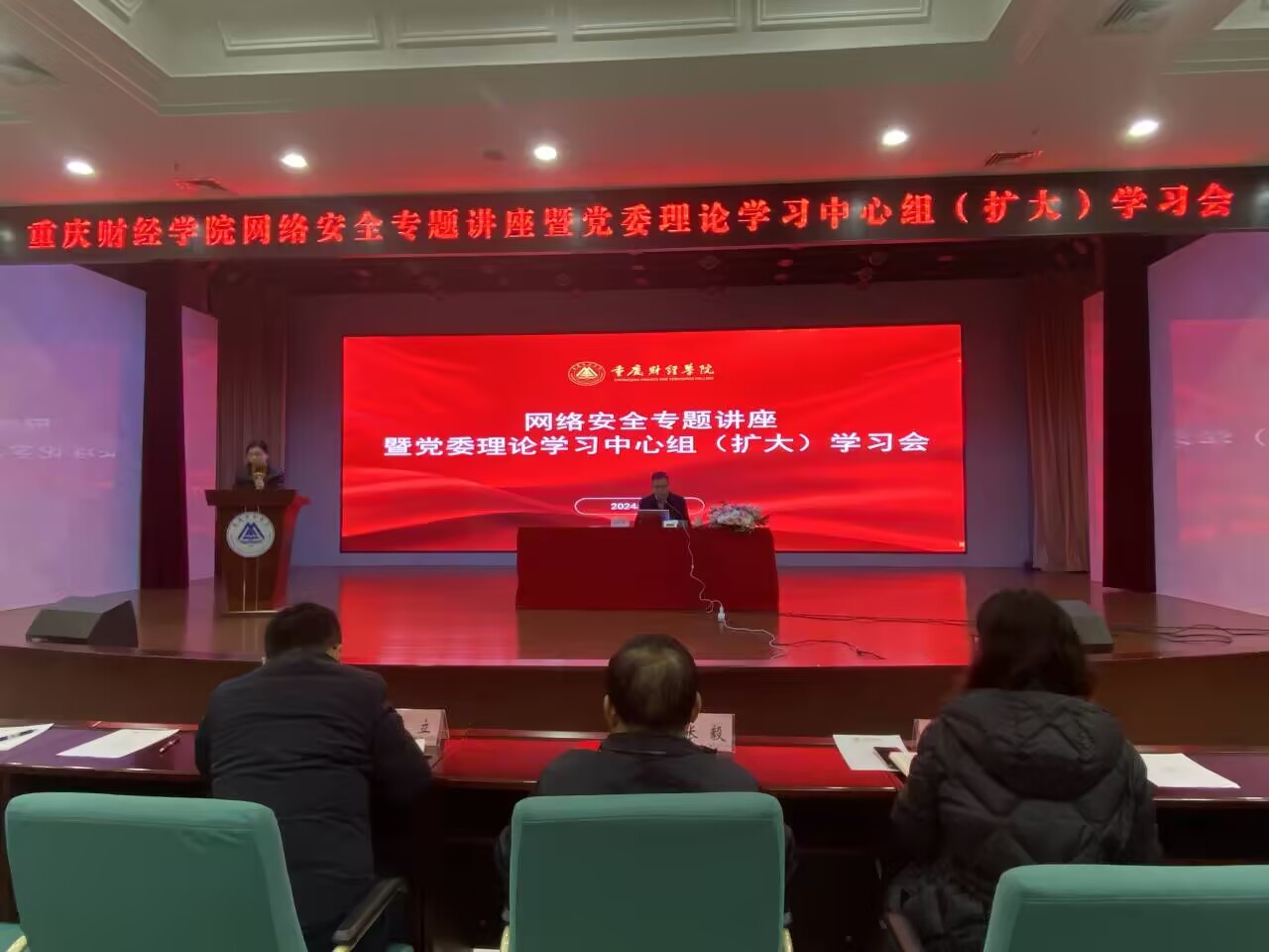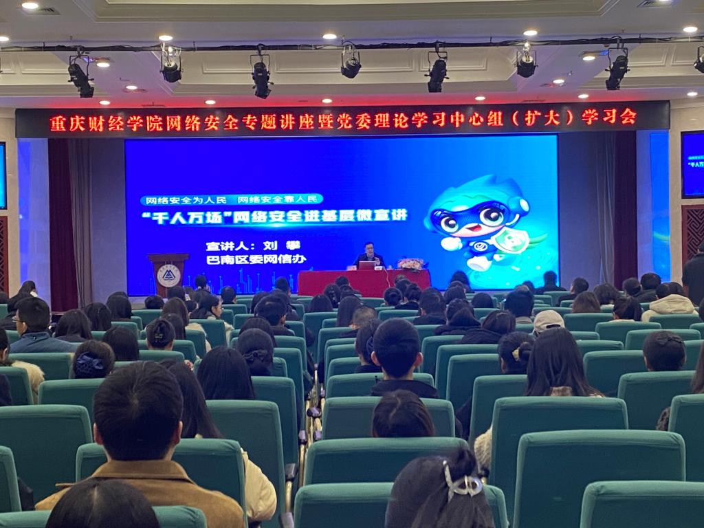 12月4日为国家宪法日,为深入学习贯彻习近平总书记关于意识形态和网络安全的重要讲话、重要指示精神,我校特邀请巴南区网信办专家来校作主题为《“千人万场”网络安全进基层微宣讲》的网络安全专题讲座暨党委理论学习中心组(扩大)学习会。校领导,安稳办负责人,二级学院书记,全体辅导员、宿舍管理员、学生党员和学生会代表参加此会议。会议由党委宣传部部长倪倩茜主持。