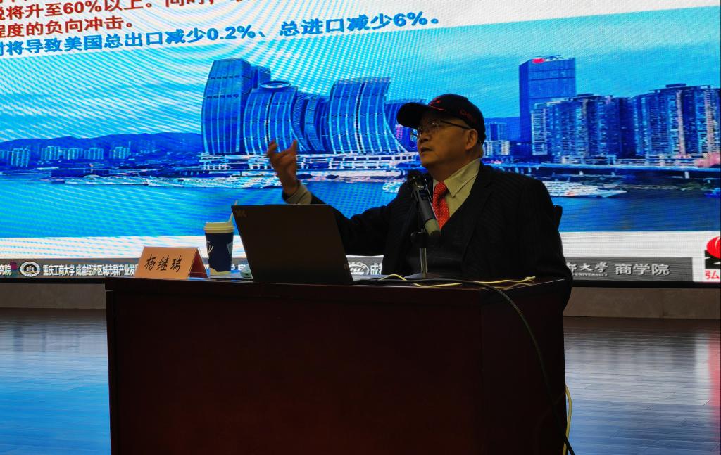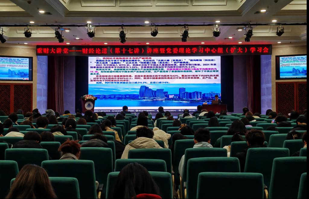 12月19日,重财大讲堂——财经论道(第十七讲)暨党委理论学习中心组(扩大)学习会在学术报告厅举行。著名学者杨继瑞教授以“中国经济近期走势及大学生就业路径抉择”为题,向全校师生做报告。党委书记张毅、校长吴华安出席,由副校长张立主持。科技处、靠谱的电子游戏官网处、学生工作部、党委宣传部承办。