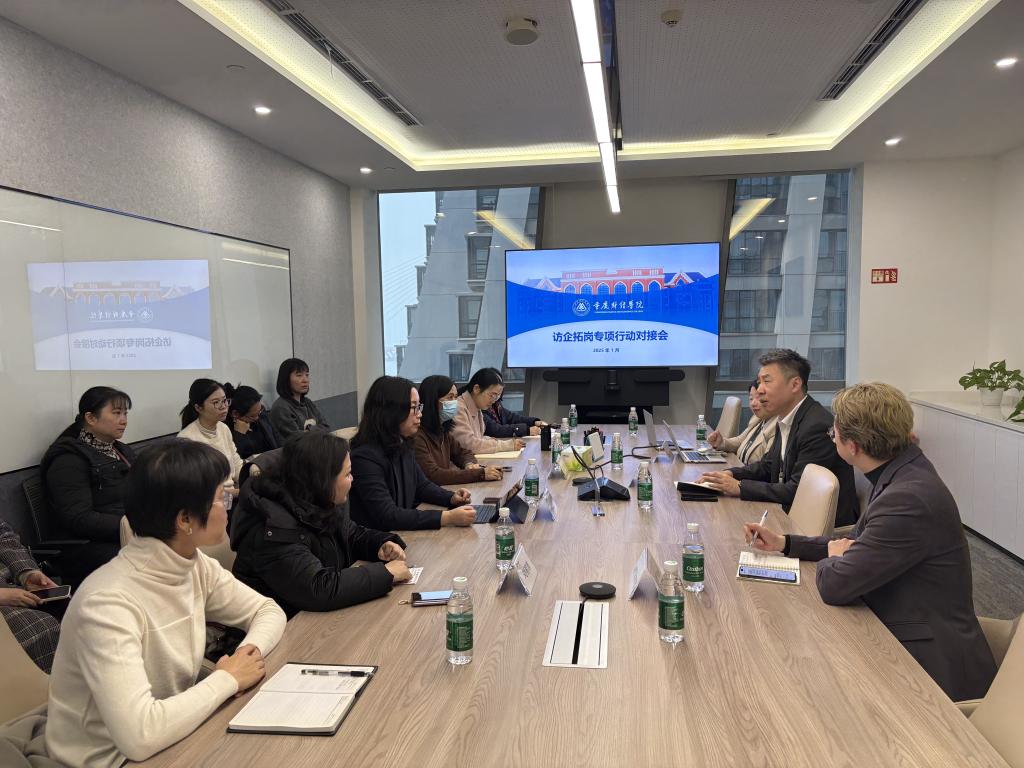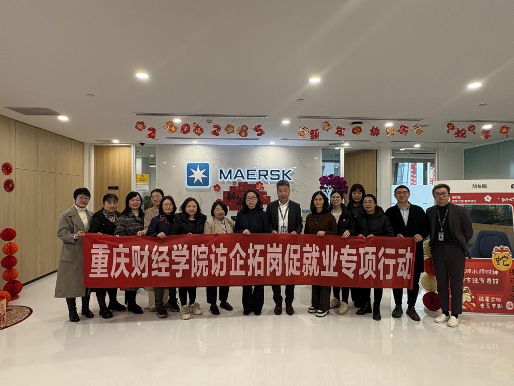 为响应教育部关于访企拓岗促就业专项行动的号召,切实推进校企深度产教合作,1月2日上午,在校党委副书记房朝君的带领下,物流工程学院院长刘岱、软件学院党总支副书记刘有沛及专职教师王莉莉、物流与供应链系主任李淑梅、电子商务系主任彭子洋及物流工程学院专职教师一行前往来福士马士基(重庆)公司共享中心洽谈校企合作,看望在马士基实习的学生们。