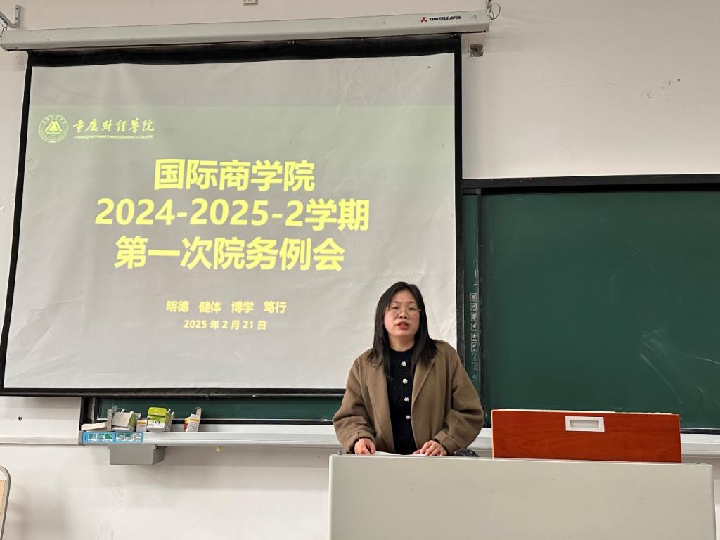 2025年春季学期开学之际,我校国际商学院在教学楼1319教室召开了新学期第一次院务会,学院全体教师参会,副校长崔中山出席会议,会议由国际商学院党总支书记宋钰静主持。会议聚焦新学期学校重点工作,传达最新教育工作精神,并对未来发展提出明确要求。