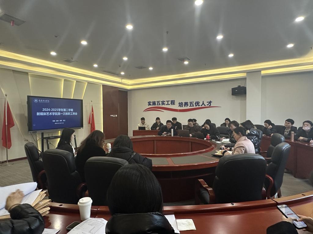 2月21日下午,我校新媒体艺术学院在行政楼2302会议室召开2024-2025学年第二学期第一次教职工例会,校长助理兼新媒体艺术学院院长张红梅出席,学院党总支书记甘雪梅、副院长李蓉及学院全体教职工参加,会议由副院长李蓉主持。