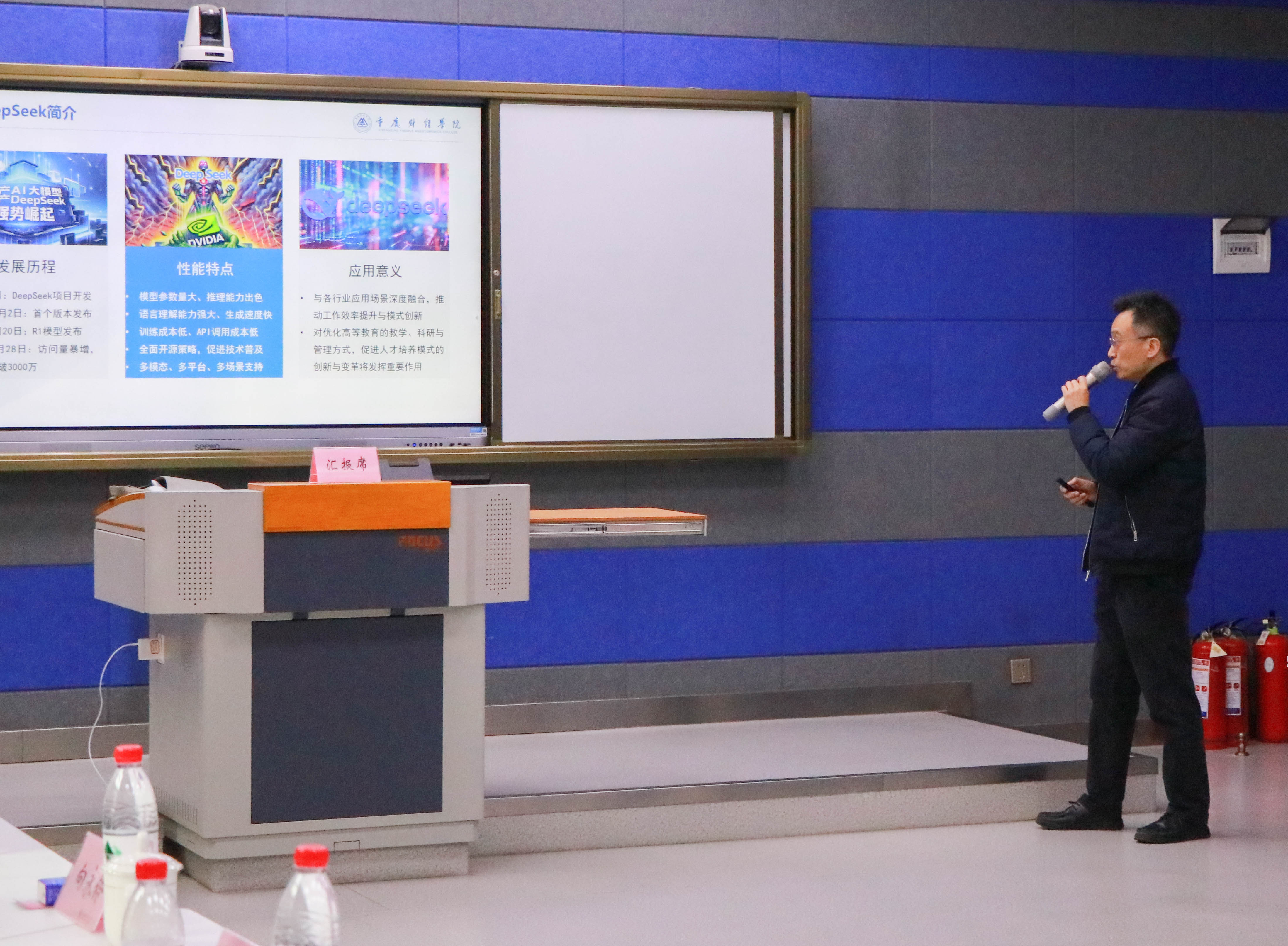 3月3日下午,靠谱的电子游戏平台官网在教学楼1220智慧教室举行“AI赋能教育高质量发展研讨会暨DeepSeek大模型上线发布会”。会议以DeepSeek大模型重财上线为契机,旨在探讨AI大模型驱动下的高等教育智慧化转型路径,推动我校智慧教学与智慧管理服务的变革。会议吹响了AI赋能高等教育的重财号角,全体校领导、师生代表以及企业嘉宾近40人参会。