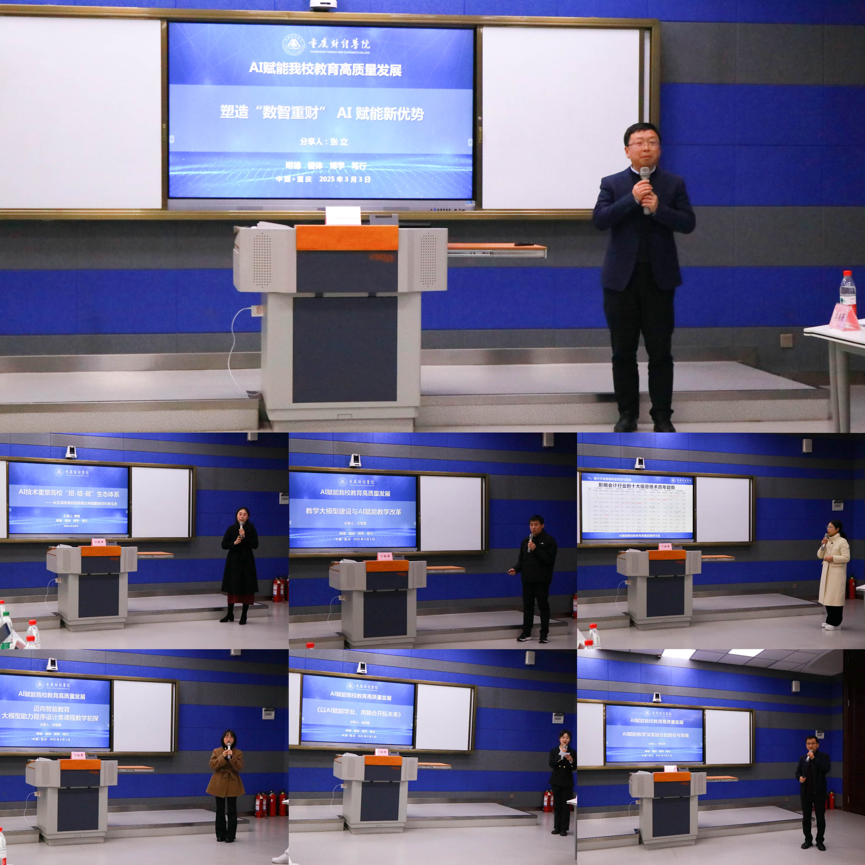 副校长张立以《塑造“数智重财”AI赋能新优势》为主题,指出AI大模型将重塑师生关系,再造教学科研过程;突出特色化、个性化,进一步赋能教学模式、课程体系、学习模式等学校教育教学全链条。未来,可以从教育模式改革、课程体系改革、智能信息应用三个方面,着力培育AI赋能智慧重财建设的新优势。