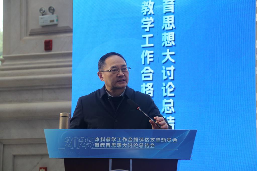 党委书记张毅就推动新时代学校本科教育高质量发展提出四点要求,一是要强化顶层设计,学校需从战略高度系统规划、科学布局,以清晰的思路与精准的举措,承担起新时代赋予的教育责任;二是秉持共生共赢理念,充分调动全体师生员工的积极性,形成全员参与、共建共享的良好局面,确保评估工作的各项任务顺利推进;三是发扬斗争精神,直面评估过程中的困难与挑战,以攻坚克难的决心和勇气,全力以赴确保评估任务圆满完成;四是强化系统观念,注重各部门、各环节之间的协同配合,凝聚集体智慧与力量,全方位提升学校教学质量与办学水平。张毅书记鼓励全体师生以党的二十大、二十届三中全会精神为指引,鼓足干劲、砥砺前行,为学校的高质量发展书写崭新篇章。
