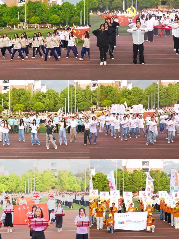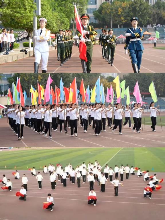 上午8时,伴随着激昂的《运动员进行曲》,国旗护卫队率先入场,他们步伐铿锵、英姿飒爽。随后,校旗方队、彩旗方队以及各学院特色方阵等依次通过主席台。其中,学生党员方阵精神抖擞,彰显先锋本色;各学院方队通过创意编排和特色表演,生动展现了学院特色与青春活力。教职工方阵的亮相更是赢得了全场热烈掌声。