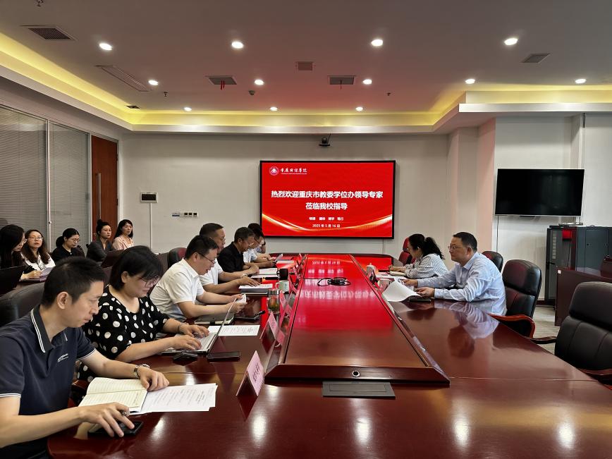 5月16日,重庆市教委学位管理与研究生教育处处长张永祥、学位管理与研究生教育处干部唐筝一行到我校调研学科建设与新增硕士学位授予单位立项建设工作。理事长黄燕、校长吴华安、相关职能部门负责人、二级学院负责人及骨干教师参加会议。副校长张立主持会议。