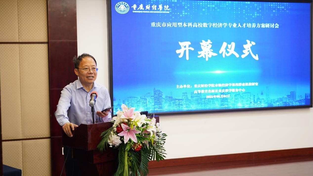 在本次开幕式上,李政军详细阐述了本次会议的背景和目标。三位特邀嘉宾分别从不同维度为研讨会作主旨致辞,我校副校长崔中山教授立足学科发展视角,深入阐释了数字经济专业建设的创新路径;高等教育出版社重庆教学服务中心副主任熊英从教材建设维度,分享了新形态教材研发的前沿理念;华科融资租赁有限公司创始人兼总裁江倩则基于企业实践,提出了产教融合培养数字经济人才的具体建议。他们的精彩发言为研讨会奠定了多元开放的基调,提供了极具价值的专业洞见。