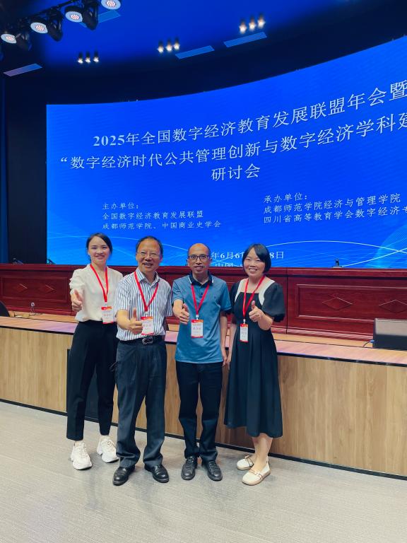 6月6日至8日,我校经济学院院长李政军带队赴成都师范学院温江校区参加2025年全国数字经济教育发展联盟年会暨“数字经济时代公共管理创新与数字经济学科建设”研讨会,经济学院副院长刘春兰、经济统计系主任伍度志和数字经济骨干教师熊萍参会。全国112所高校300多名数字经济专家学者和高校教师参加了此次会议。
