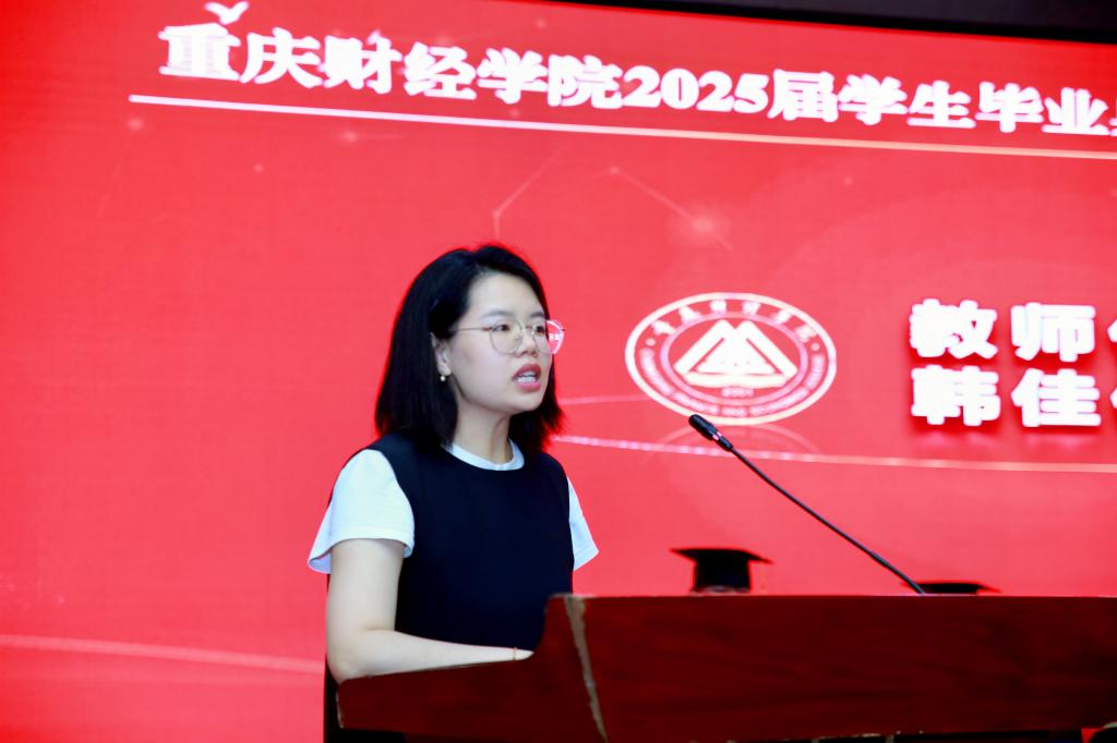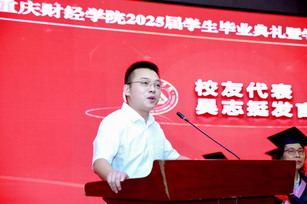 毕业生代表毛怡然发言,她深情表达了对学校培养的感激之情,并表示同学们将以“明德健体、博学笃行”校训为帆,奔赴新的征程。校友代表吴志挺向毕业生们表达了热烈的祝贺。他回顾往昔,放眼未来,希望大家能够在未来中学会“抓重点、解难点、控节点”,用乐观务实的脚步去丈量成功的旅程。教师代表韩佳佚希望大家坚守专业精神,保持终身学习,拥抱时代变革,胸怀家国天下,勇担社会责任。
