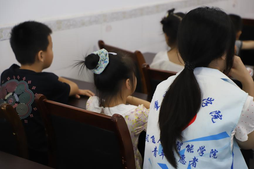| 志愿者化身小朋友们的“陪读”(讯飞人工智能学院学生媒体中心 摄) |