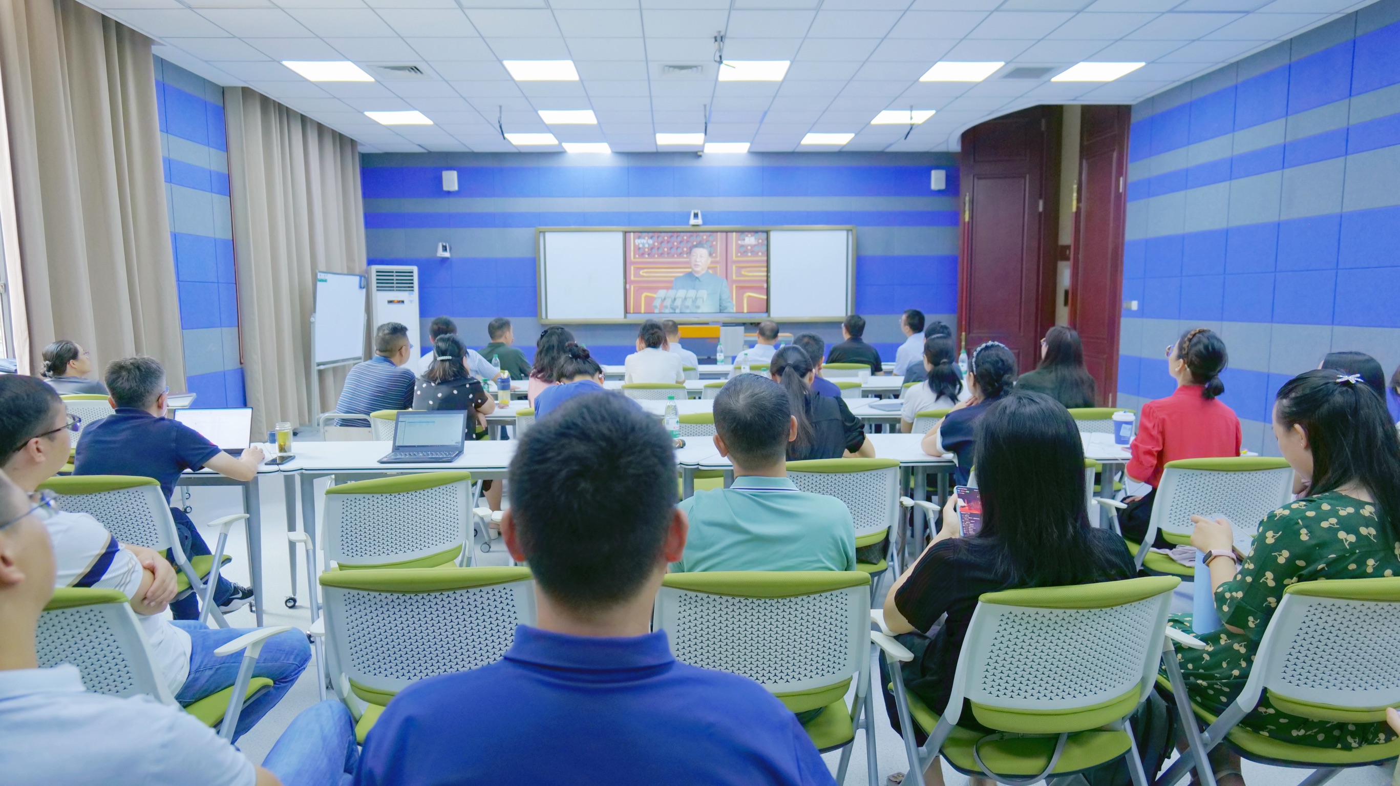 为深切缅怀革命先烈,传承弘扬伟大抗战精神,我校校领导及全体中层干部在教学楼1220智慧教室集中观看纪念中国人民抗日战争暨世界反法西斯战争胜利80周年大会直播,共同见证这一庄严而神圣的历史时刻。