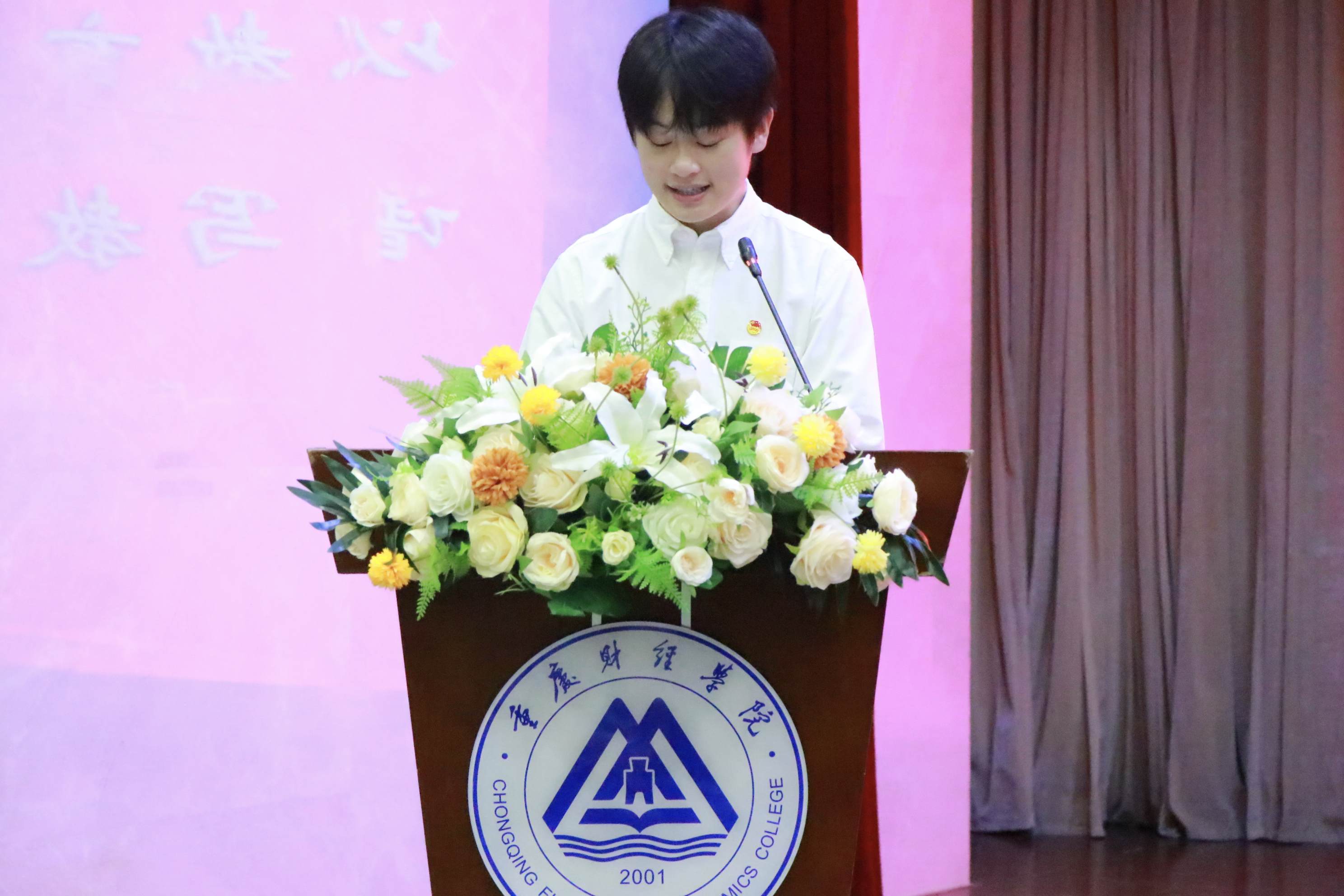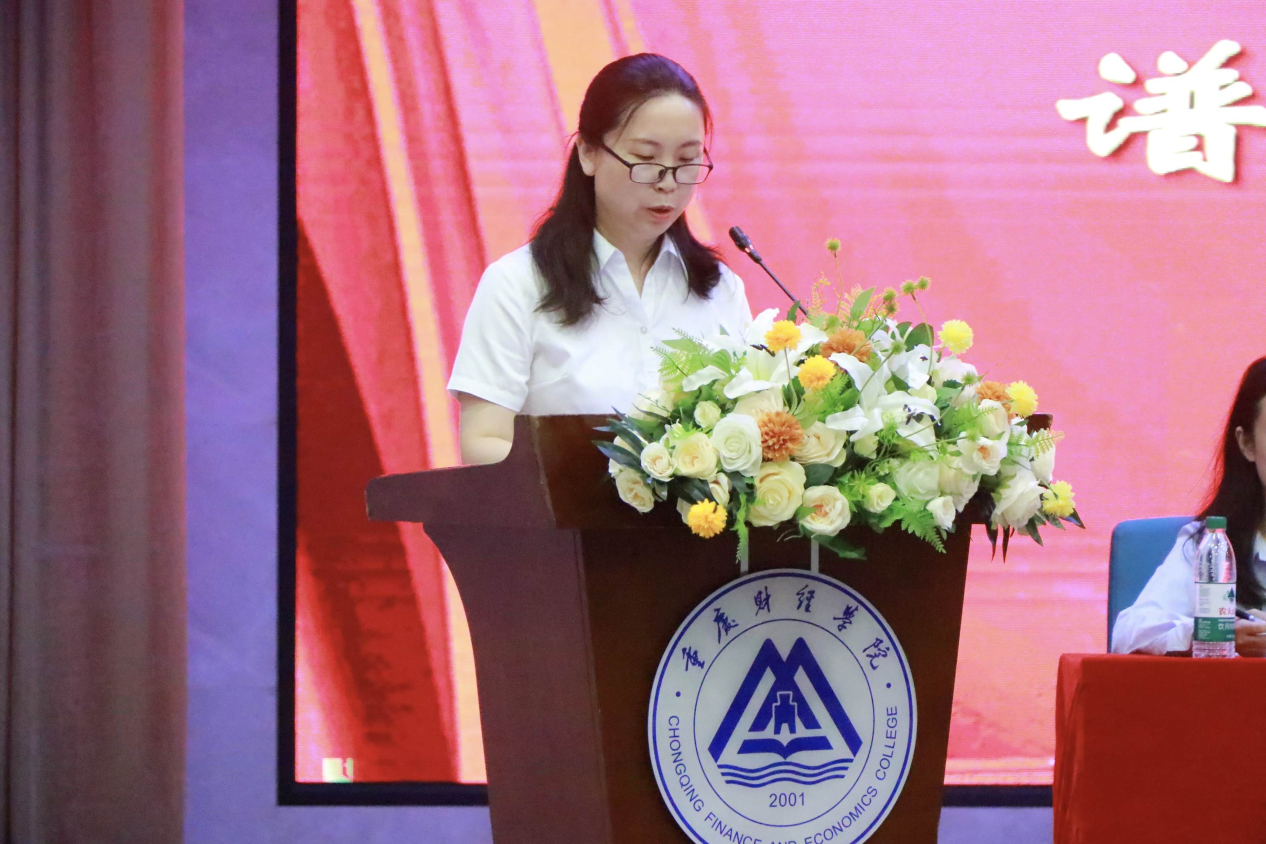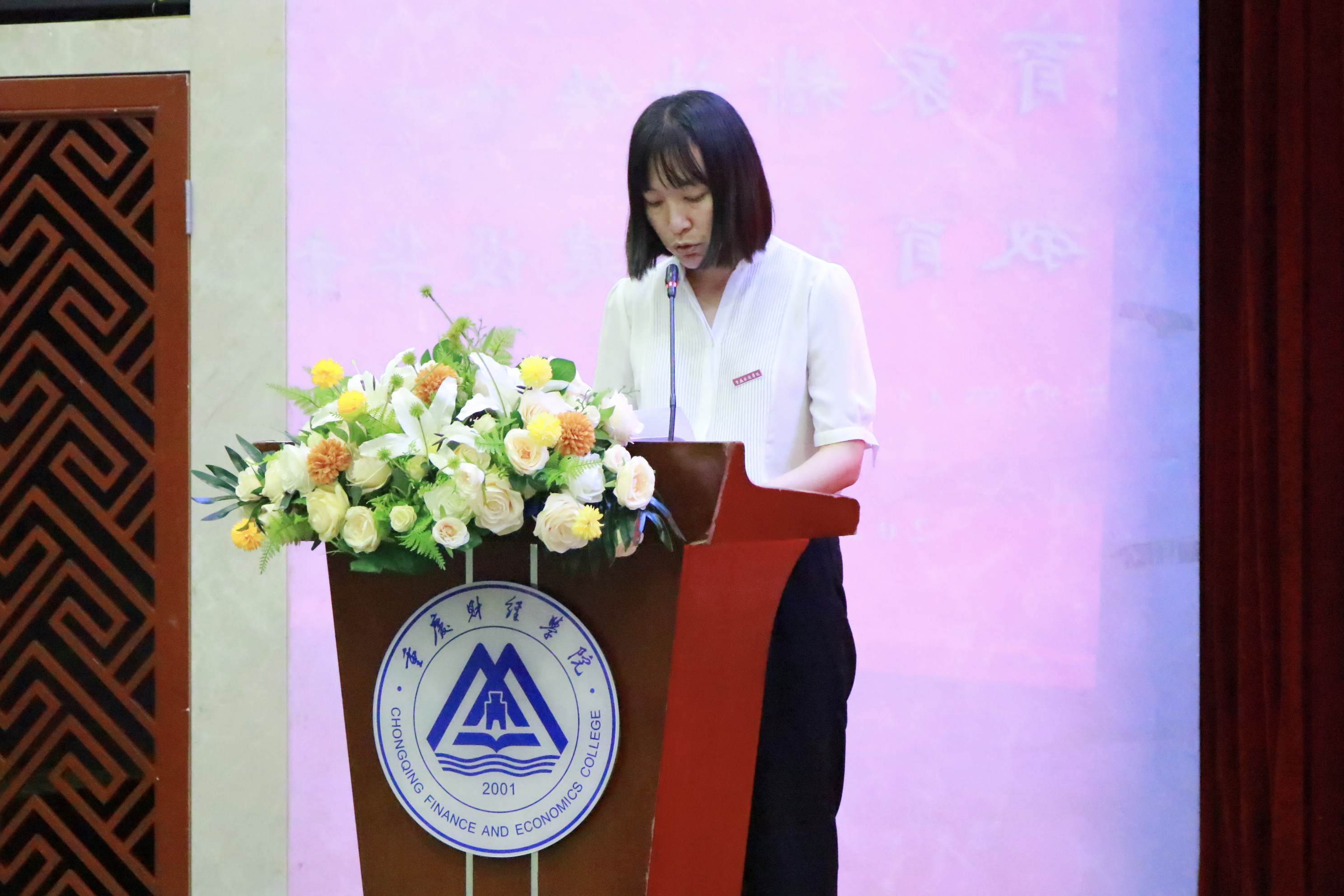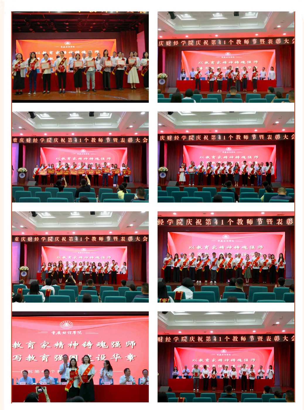 学校领导宣读表彰文件后,为优秀个人和团队颁奖,为获得主讲教师资格认定的教师代表颁发资格证书。王晓峰老师带领新教师代表宣读誓词,教师们佩戴校徽,肃然伫立,庄严宣誓,在声声誓言中,重财新教师们将接过“教育强市”“教育强校”的接力棒,为建设中国一流新型财经大学、建设世界教育强国而不懈努力。