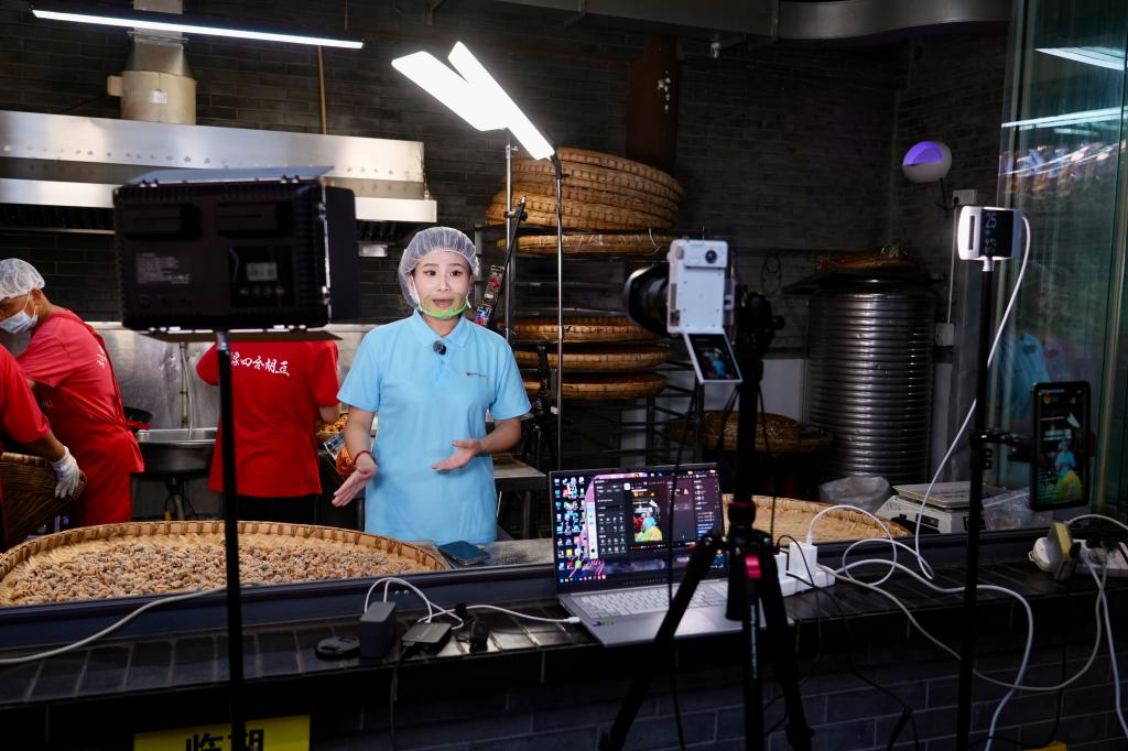 | (图1 我院播音与主持艺术专业学生在四合胡豆进行直播) |