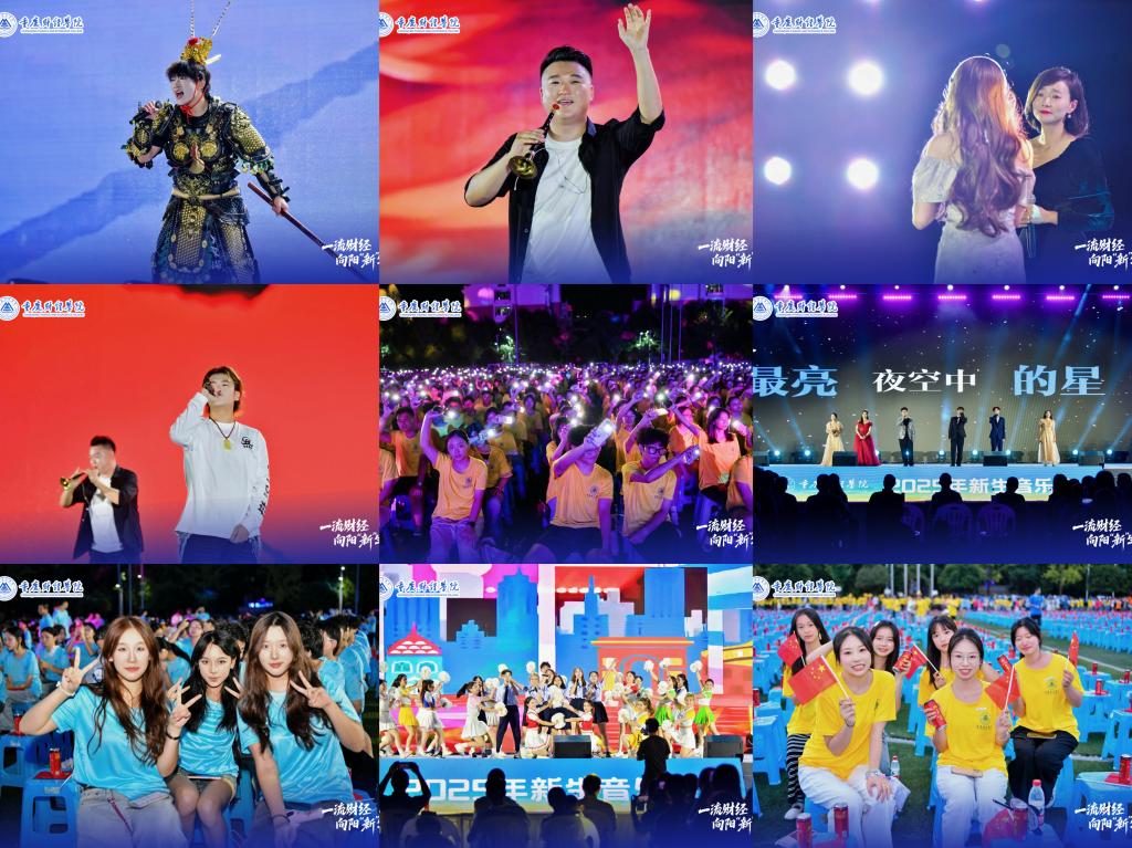 当晚七点半,“葵心向阳 财韵新声”2025年新生音乐会在运动场举行,设“缘起・沃土新芽”“向阳・逐光而行”“绽放・共赴一流”三个篇章。音乐会以唢呐、说唱、歌曲串烧、街舞等形式呈现,《百鸟朝凤》《麒麟》融合传统与现代,《是妈妈是女儿》《悟空》兼具深情与力量,街舞展青春风采,最终全场大合唱《歌唱祖国》,既抒发了对祖国的热爱,也凝聚起重财人携手奋进的力量。