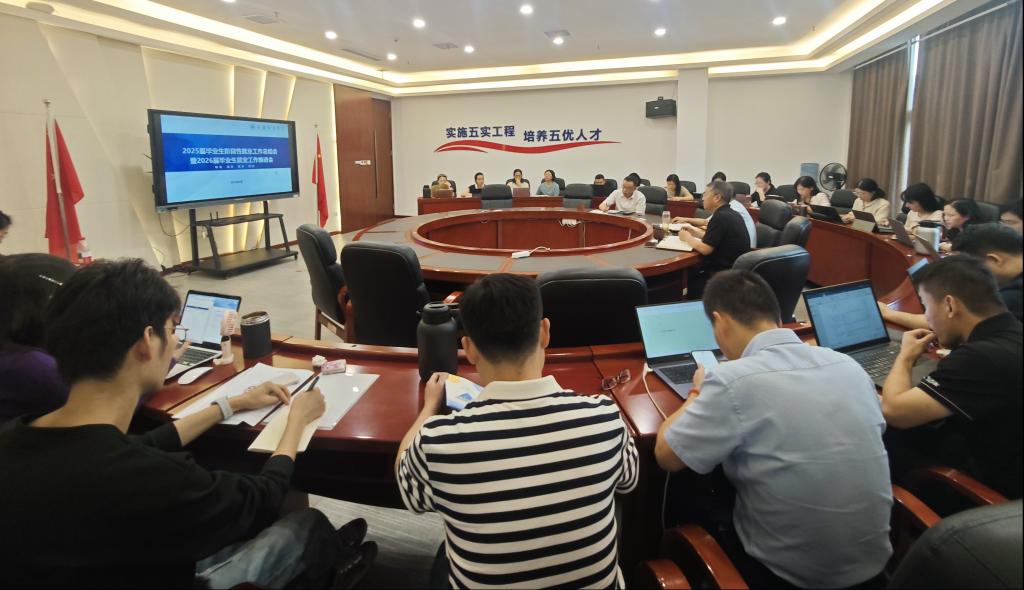 为全面总结2025届毕业生就业工作阶段性成果,并扎实推进2026届毕业生就业工作,9月29日,我校在行政楼2302召开了2025届毕业生阶段性就业工作总结会暨2026届毕业生就业工作推进会。会议由副校长李春雷主持,校长吴华安、校党委书记张毅、各二级学院党政负责人及相关部门负责人参加此次会议。