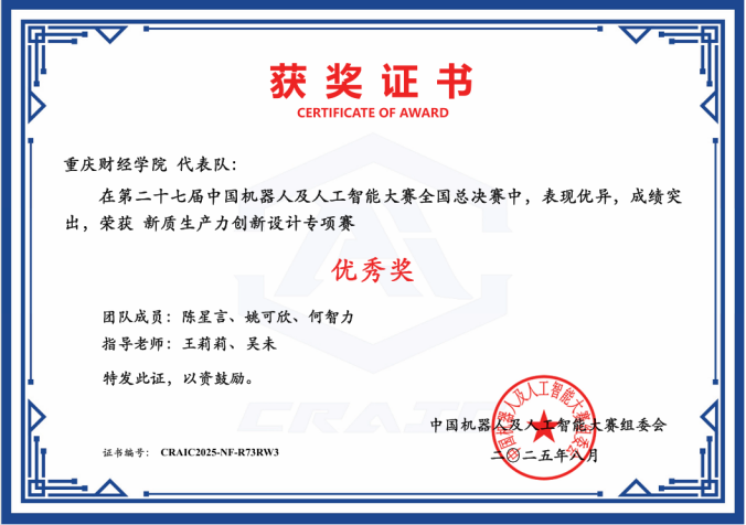 此次获奖不仅是对师生团队辛勤付出的高度认可,也标志着软件学院在机器人与人工智能领域的教育实践迈上新台阶。未来,学院将继续坚持“做产教融合先锋,建新型财经名校”的发展愿景,持续深化校企协同、科教融合,完善“以赛促教、以赛促学、以赛促创”机制,为培养具备国际视野与创新能力的高素质应用型人才不断贡献力量。
