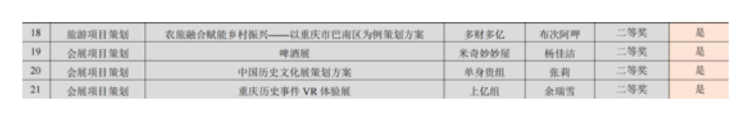 在第十九届全国大学生文旅与会展创新创业实践竞赛重庆市赛中,会展学子聚焦行业热点,提交多份优质作品,共获二等奖8项,均入围全国总决赛。