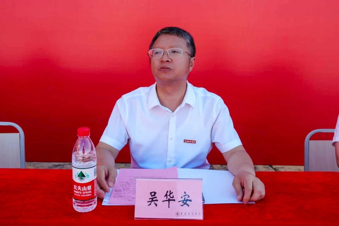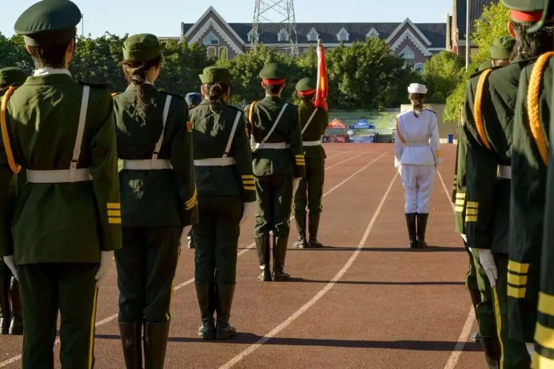 动员讲话结束后,校长吴华安走上台前,郑重向军训团授旗。军训团代表接过旗帜,旗帜迎风飘扬,象征着军训任务正式交接,也点燃了全体参训人员的热情与斗志。