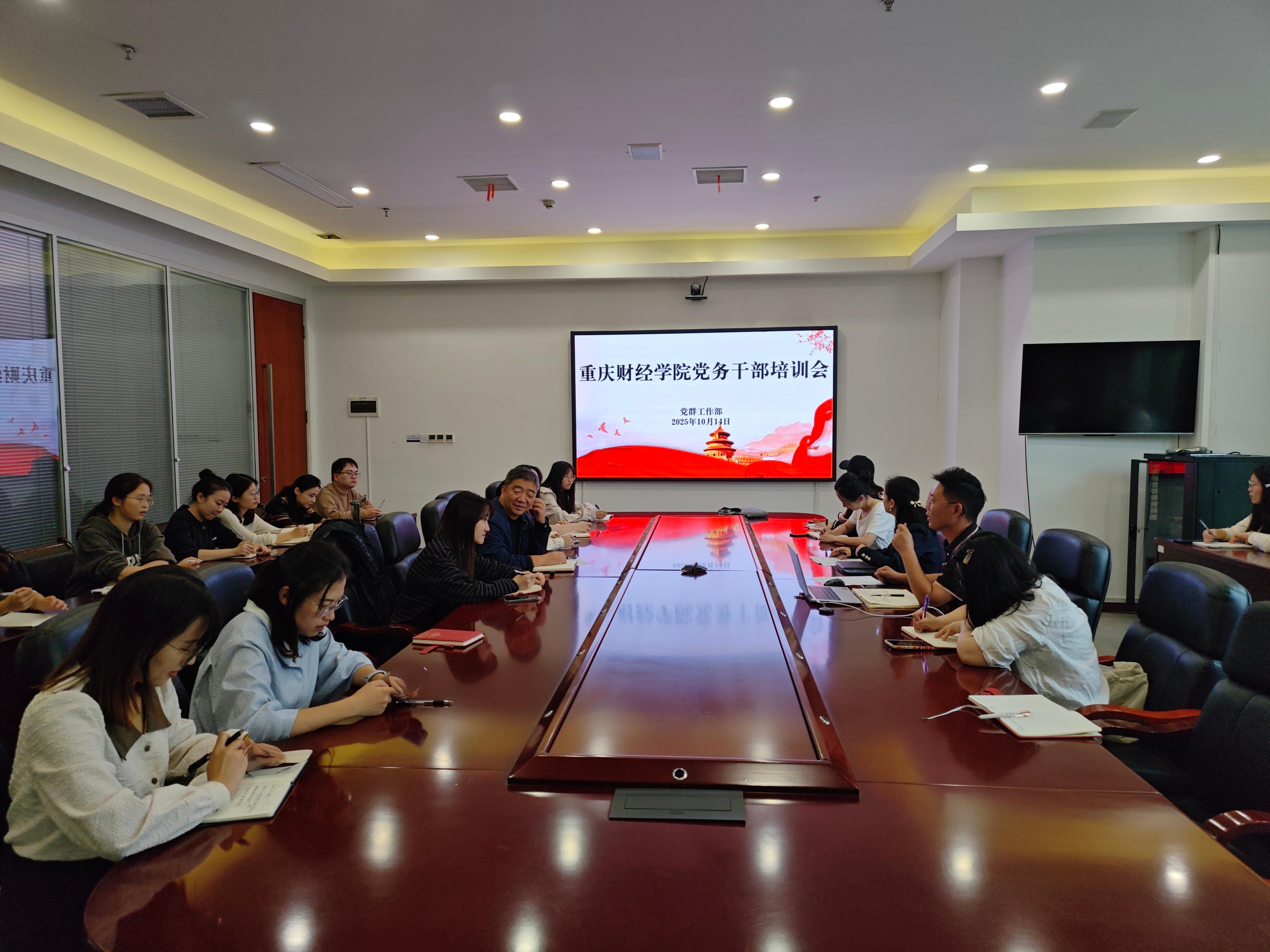 为认真贯彻中组部、教育部和学校党委关于党建工作要求,进一步加强学校基层党组织和党员队伍建设,切实做好党员发展与教育管理工作,10月14日下午3:00,学校于2303会议室召开党务干部培训会。党群工作部部长甘雪梅,党群工作部工作人员及各二级学院专职组织员、学生党支部书记、党员服务站工作人员参加会议,会议由甘雪梅主持。
