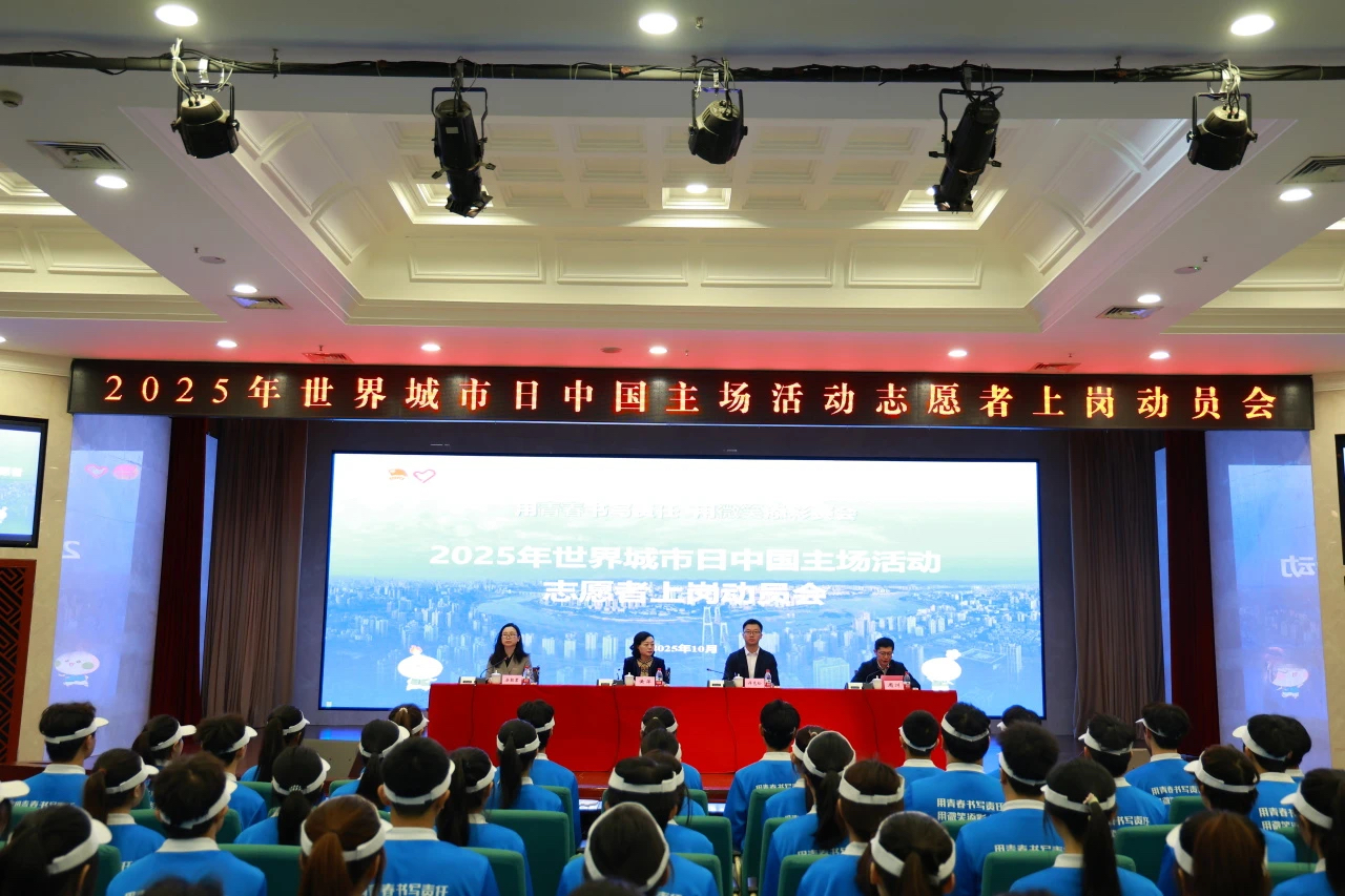 10月23日上午,2025年世界城市日中国主场活动志愿者上岗动员会在我校学术报告厅举行。市城市管理局二级巡视员黄萍、团市委副书记许克松、校党委副书记房朝君出席会议。志愿者招募高校带队教师、大会志愿者服务组工作人员及120名活动志愿者共同参会。