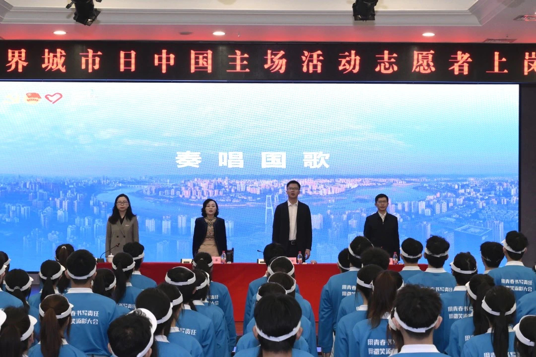 团市委副书记许克松发表讲话。他强调,世界城市日中国主场活动意义重大,“蓝精灵”志愿者是活动形象的重要窗口,希望大家强化服务意识、提升服务水平,以朝气蓬勃的状态完成任务,做到为个人开拓视野、提升自我;为社会传递温暖、贡献青年力量。随后,克松书记宣布志愿者正式出征,2025年世界城市日中国主场活动志愿服务工作全面启动。