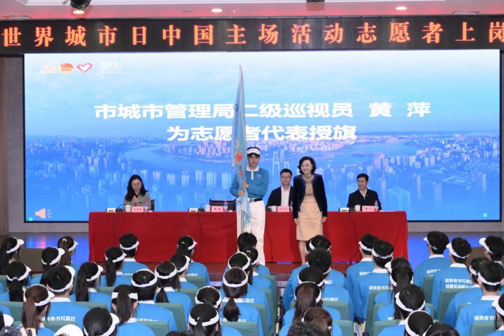 市城市管理局二级巡视员黄萍为志愿者代表授旗。在志愿者集体宣誓环节,志愿者代表梁林豪带领全体志愿者庄严宣誓,承诺践行志愿服务精神,全力以赴完成服务任务。