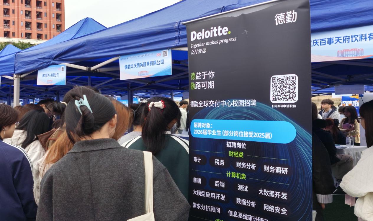 头部企业云集,助力“个个有赛道,人人能出彩”。双选会现场汇聚赛力斯、海康威视、华为慧通、科大讯飞、中国人寿、京东物流、顺丰速运、招商证券、德勤华庆、中国联通、重百大楼等一批行业内优质企业,带来软件研发、数据分析、财务管理、物流运营、金融服务、企业管理等多类型岗位。丰富的岗位资源与优质的企业平台,不仅为毕业生提供了接触行业头部企业的机会,也为学校与优质企业深化合作奠定基础。