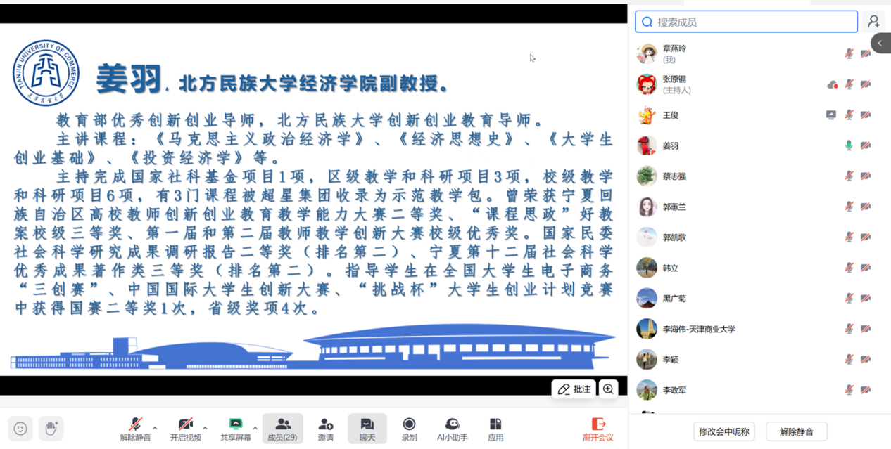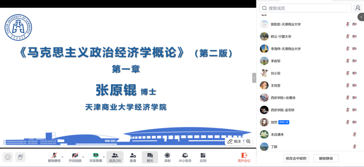 10月25日下午2点至4点,我校市级经济学课程群虚拟教研室联合发起的全国政治经济学集体备课会,通过腾讯会议(会议号:216112591)在线开展第二次集体备课会。参加这次备课会的高校有靠谱的电子游戏平台官网、宁夏大学、天津商业大学、天津财经大学、天津师范大学、北方民族大学、西华大学、兰州财经大学、西京学院等九所高校30位政治经济学任课教师,围绕马工程《马克思主义政治经济学概论》第一章“商品”展开。此次备课会由天津商业大学政治经济学教研室组织,教研室主任王俊副教授主持。