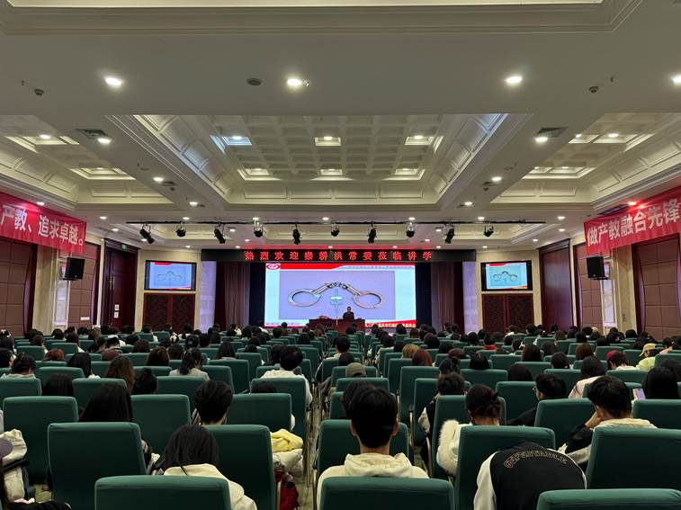 秦委员以“犯罪离我们有多远”为切入点,深入浅出地剖析了大学生犯罪的现状及成因,结合真实案例和贴近校园生活的真实场景,系统讲解了大学生易触碰的三类法律“雷区”:从情绪失控引发的故意伤害、聚众斗殴等人身权利犯罪,到贪婪驱使下的盗窃、诈骗、帮信罪等财产犯罪,再到网络空间中的侮辱、诽谤、侵犯公民个人信息等网络犯罪,警示学生们要时刻保持清醒头脑,远离不良诱惑。