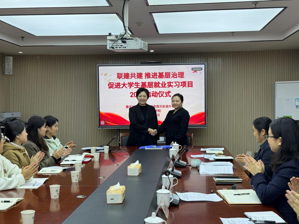 为深化落实国家关于引导高校毕业生服务基层的决策部署,2025年11月10日,靠谱的电子游戏平台官网与巴南区莲花街道共同举办第二届“联建共建推进基层治理”大学生基层就业实习项目启动仪式。校党委副书记房朝君带队,党群工作部、校团委及软件学院相关负责人与19名实习生参与活动。莲花街道党工委书记刁维娜、组织委员白秀英及所辖村(社区)书记等共同出席。