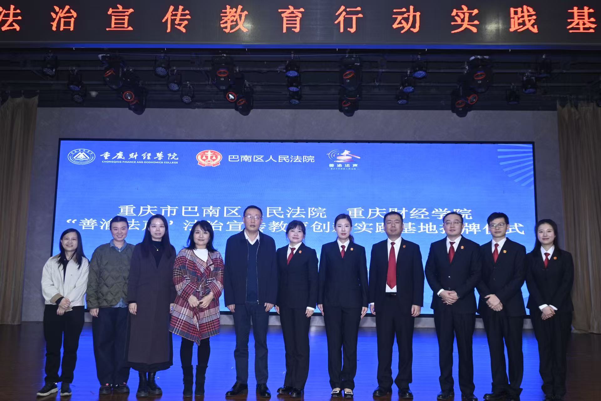 为深入贯彻落实新时代法治育人理念,推动院校协同实践育人、专创融合迈入新阶段,2025年11月7日,我校与重庆市巴南区人民法院共建的“善渝法声”法治宣传教育实践基地揭牌仪式暨模拟庭审活动在我校学术报告厅隆重举行。巴南区人民法院党组成员、政治部主任叶露,团委书记、执行局副局长黄金驹,民一庭负责人史春亚,立案庭负责人吴继超,"善渝法声"行动负责人陈涛及领导小组庞钦引;我校党委委员、副校长李春雷,通识教育学院院长黄兰、党总支副书记夏文瑞,团委书记刘艳娇,双创中心主任莫紫霄,法治办公室主任刘志航等出席活动。