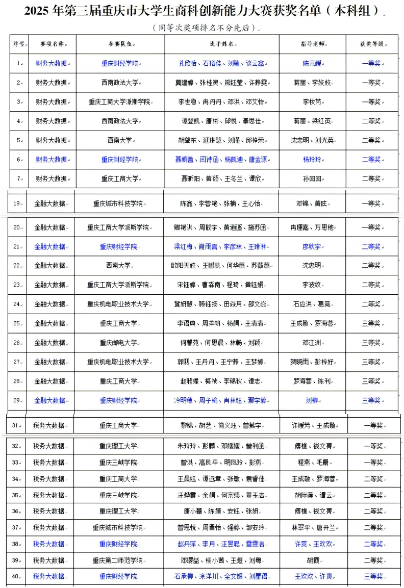 这一成绩的取得,得益于学校对学科竞赛的高度重视与系统支持。为备战本次市赛,学校于9月成功举办校级选拔赛,经过上级和面试两轮激烈角逐,从全校47支队伍中遴选出六支优秀团队参赛。面对包括西南大学、西南政法大学、重庆工商大学、重庆理工大学等众多公办高校的强劲对手,我校学子取得的佳绩,既是参赛学子刻苦钻研、奋勇拼搏的成果,也是学校重视实践教学、深化产教融合的生动体现。